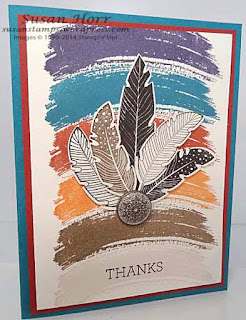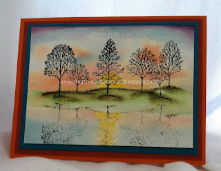 This is a Mandarin duck. The colours are wonderful, aren't they? To start off Challenge WCC25, here is Kath's card, using the water and colours as her inspiration. Kath has used the colour palette from the inspiration photo for her background and colouring. Yours can be as vibrant as those in the photo inspiration or you can even use the duck itself and its feathers. It is the inspiration that the photo gives you, not necessarily a copy of the photo (although that, too, can be your choice). You'll see examples of some of the choices that can be made as we present the cards submitted by the Watercooler Artists. You can find out all the details regarding Kath's card by clicking on her name, below her card, just as you can for any of the cards submitted by the other Watercooler Artists.