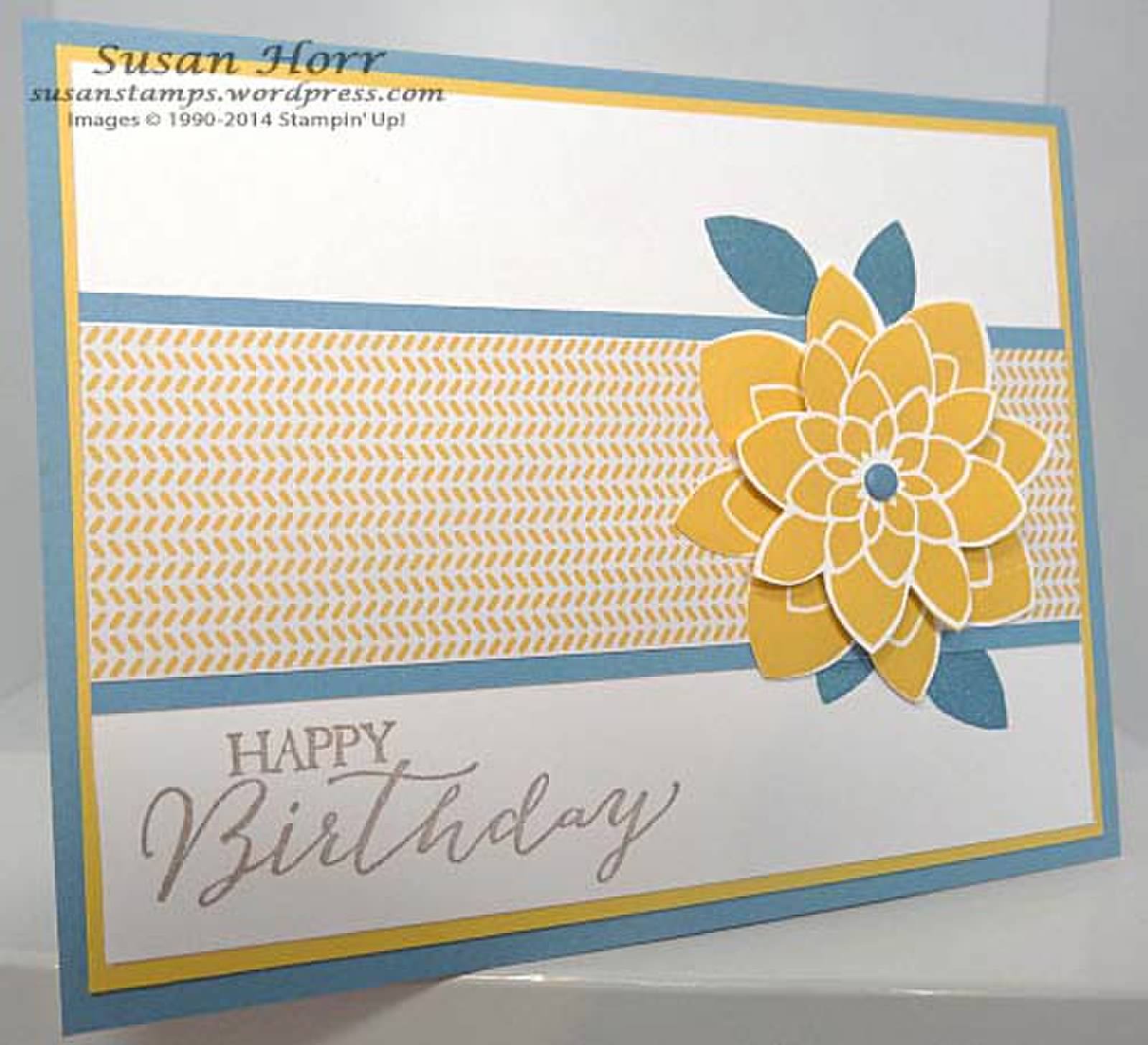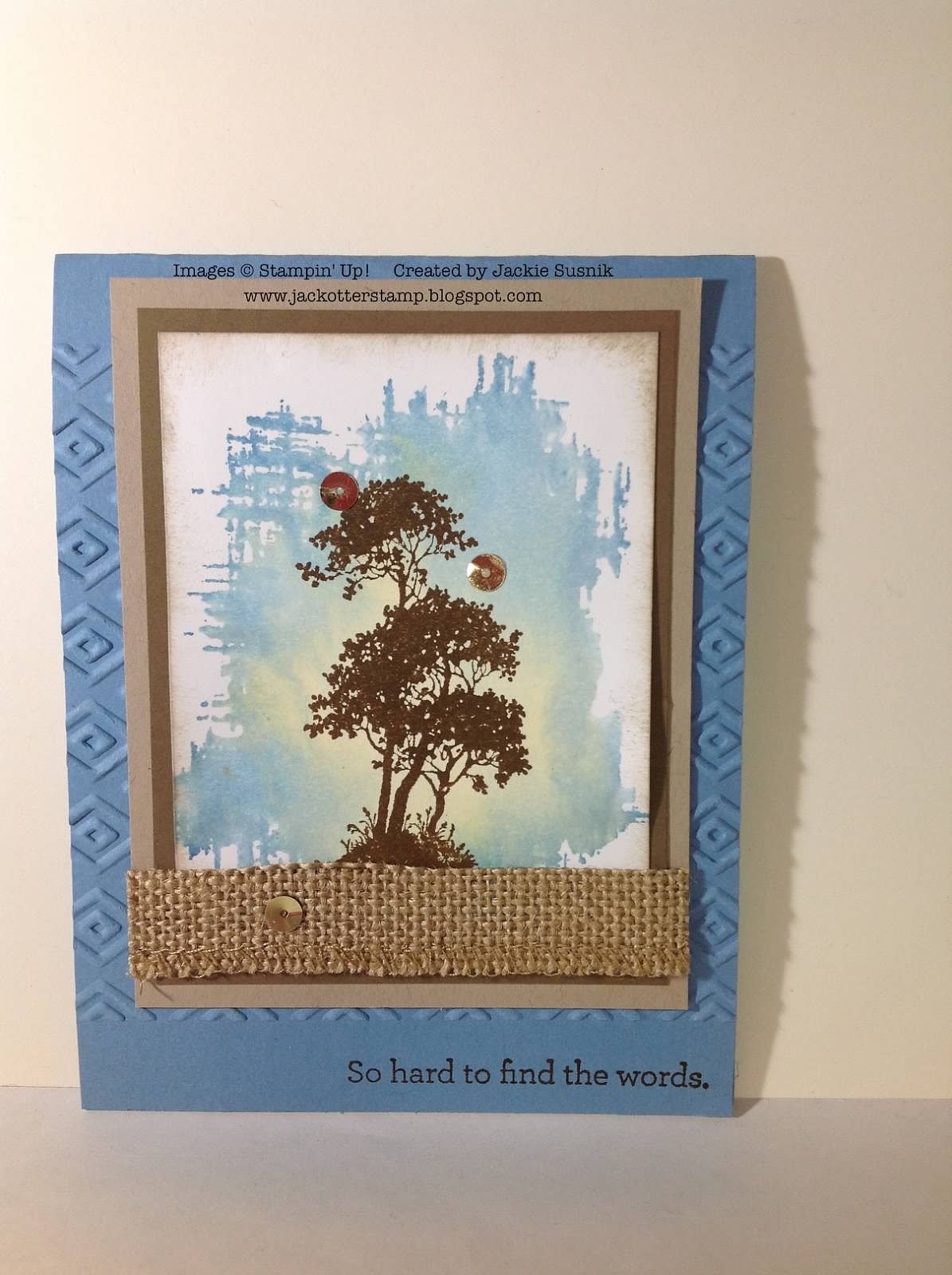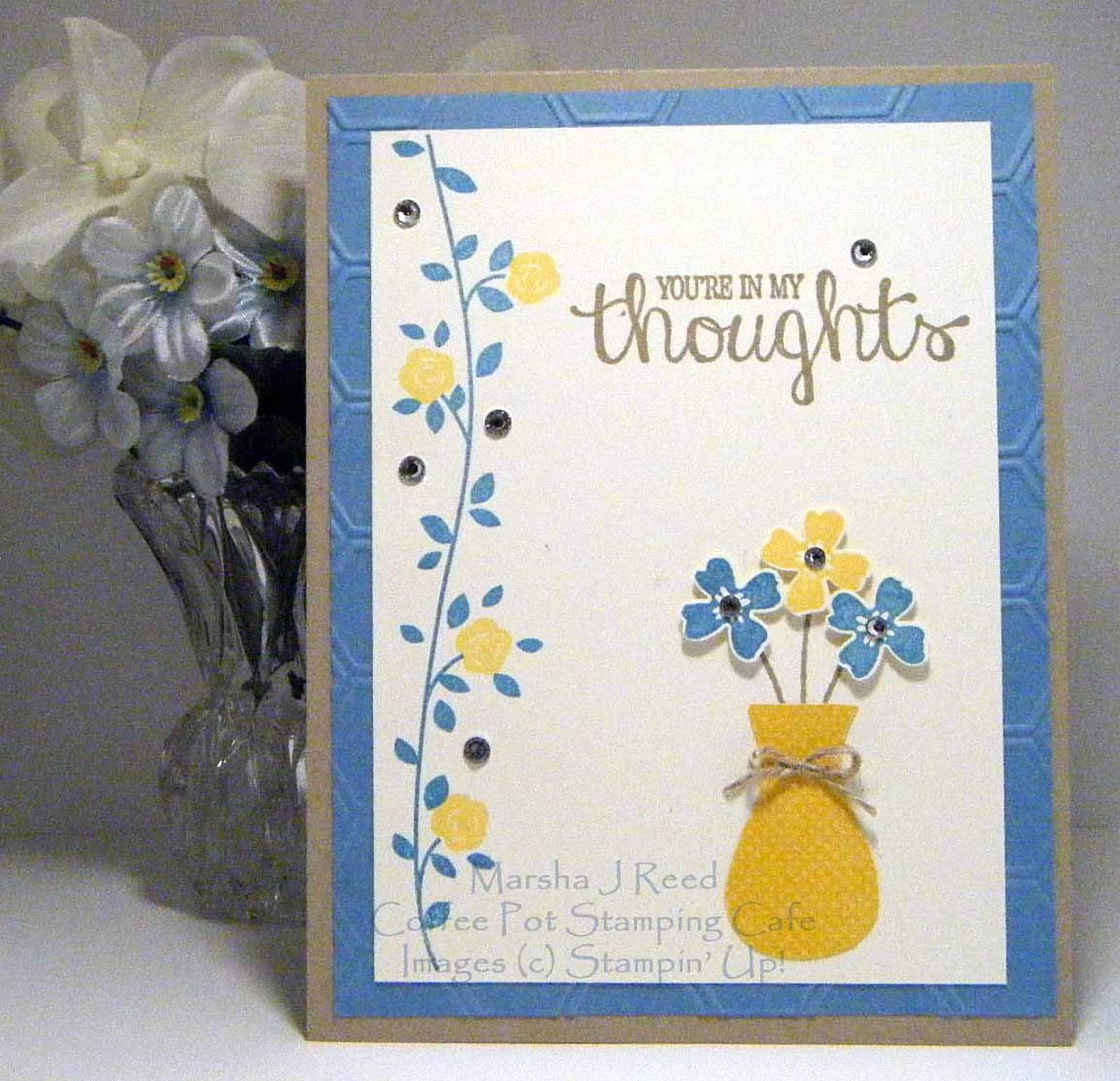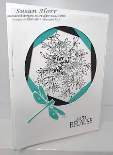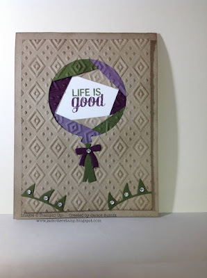 To start off Challenge WCC27, here is Jackie's card. Not only has Jackie created a beautifully coloured iris effect, she has used the wonderful, new Boho Chic embossing folder on everything but the sentiment. Doesn't the embossing have fantastic impact? You can find out all the details regarding Jackie's card by clicking on her name, just below her card. This also applies to the cards presented by the remaining Watercooler Artists.