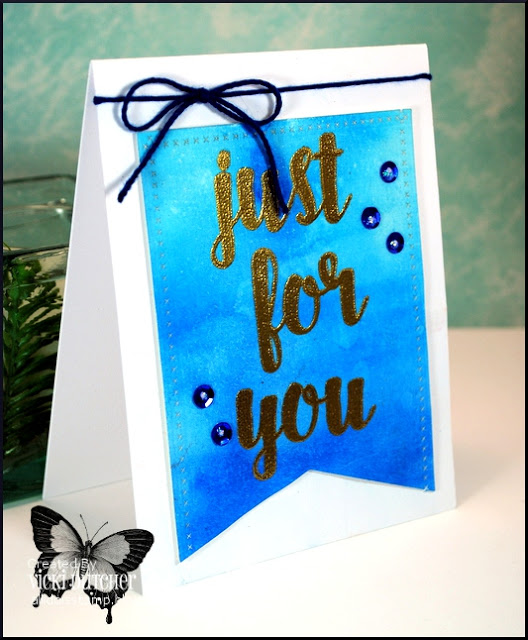 So basically you just have to think masculine. Otherwise anything goes. It can be as simple or as fancy as you please. It can be for a birthday, anniversary, Christmas, or anything at all. Your choice. You can see from the diversity of the cards created by our Watercooler Artists that there is a huge range of options open to you. As usual, if you click on the name under each card, you can visit the blog post to see details on how the card was created. We begin with Marsha's wonderful masculine card.