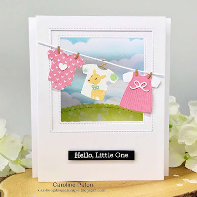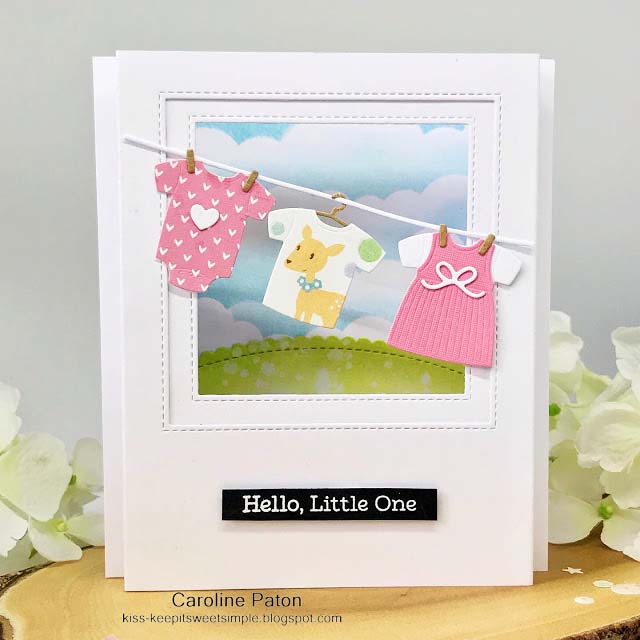 Dawn's Rocker: Caroline has made an adorable shadow box card with the cutest baby clothes. The background is stunning and really sets of the clothes line.