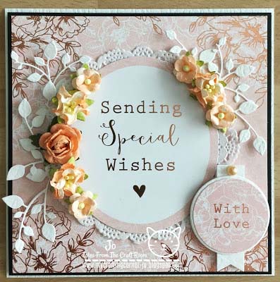 Marsha's Rocker: Jo has created a beautiful card. I love all the layers and the colors along with those pretty flowers.