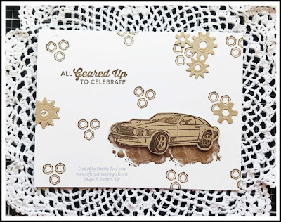 Are you ready to be inspired by the terrific projects created by the Watercooler Artists? I love how wonderfully diverse all our creations are this week, don't you? For details on how Marsha and the other Watercooler Artists created their projects, just click on the name underneath and you will be taken to that blog post. We begin with Marsha's terrific sepia car-lover's card: