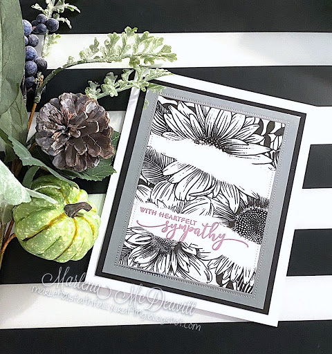 Tristan's Rock Star: Marlena has created a super cool monochromatic card with the pop of colour and torn strip masking of her floral image. A very elegant card.