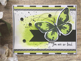 Penny's Choice: Sequins, string and splatters along with a great combination of back ground elements make this beautiful butterfly card soar! Well done.
