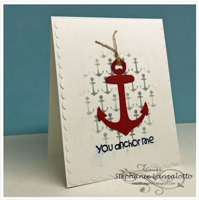 Dawn's Rocker: This is a quintessential masculine card. The white waves on the background and the white anchor with the sentiment on red certainly make the card pop.