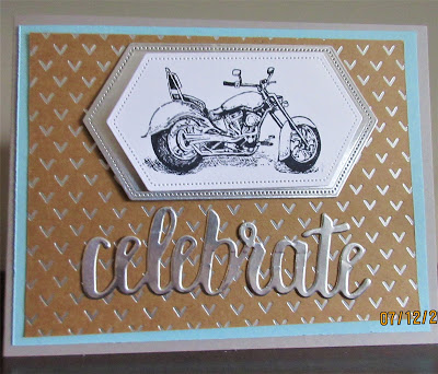 Heidi's Rocker: Heather has created an amazing birthday pop-up card for her son. Love the colours and the use of those great stitched, nested dies and the foil to showcase that wonderful motorcycle image.